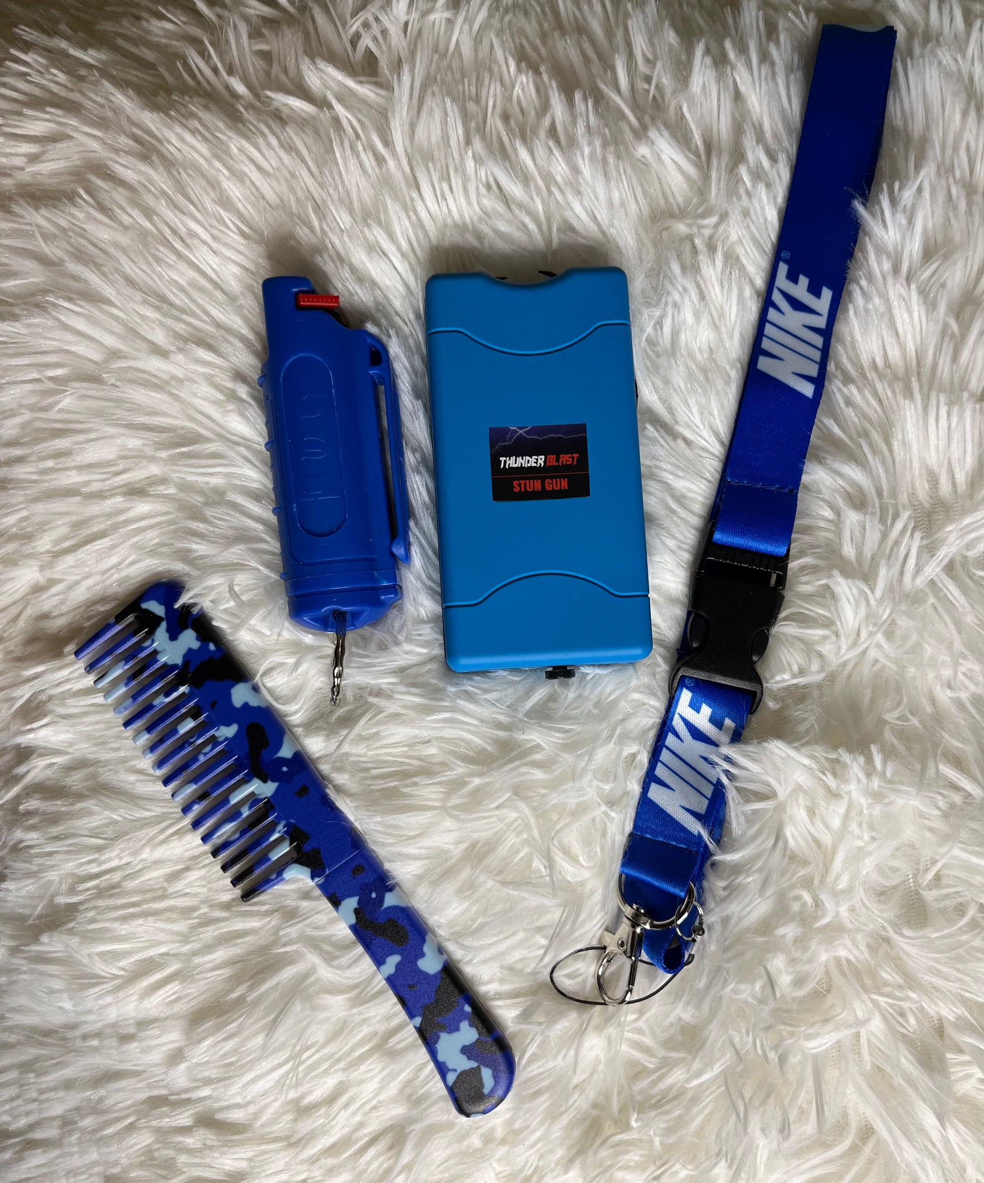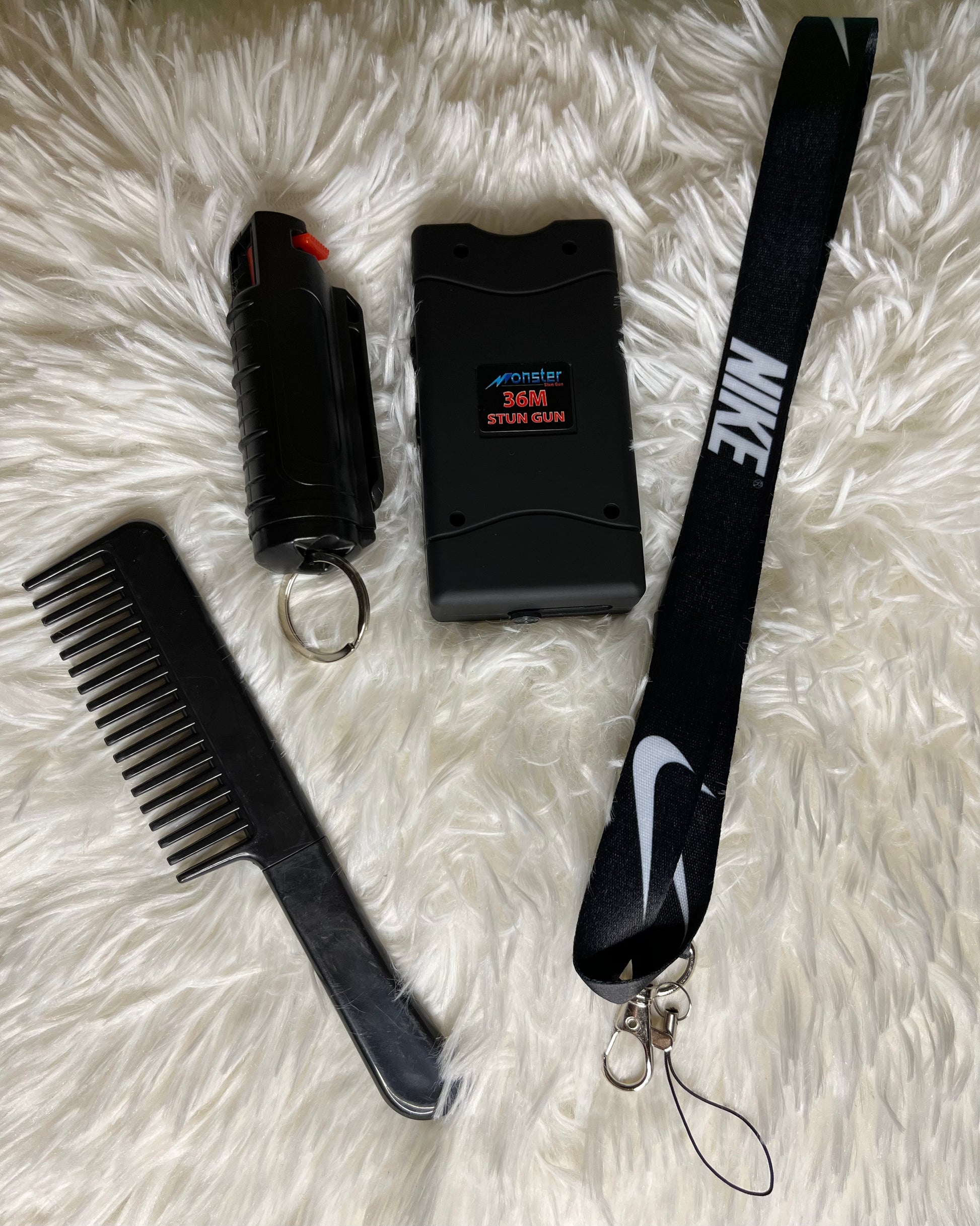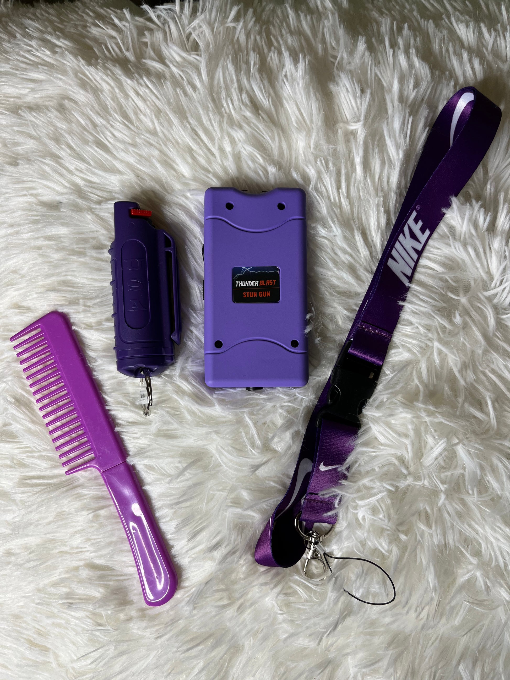 No keychain? No problem! Pretty Protective Gear is gonna get you right with all the essentials that you need! The Starter Kit includes a stun gun, pepper spray, disguisable comb knife, and a lanyard!